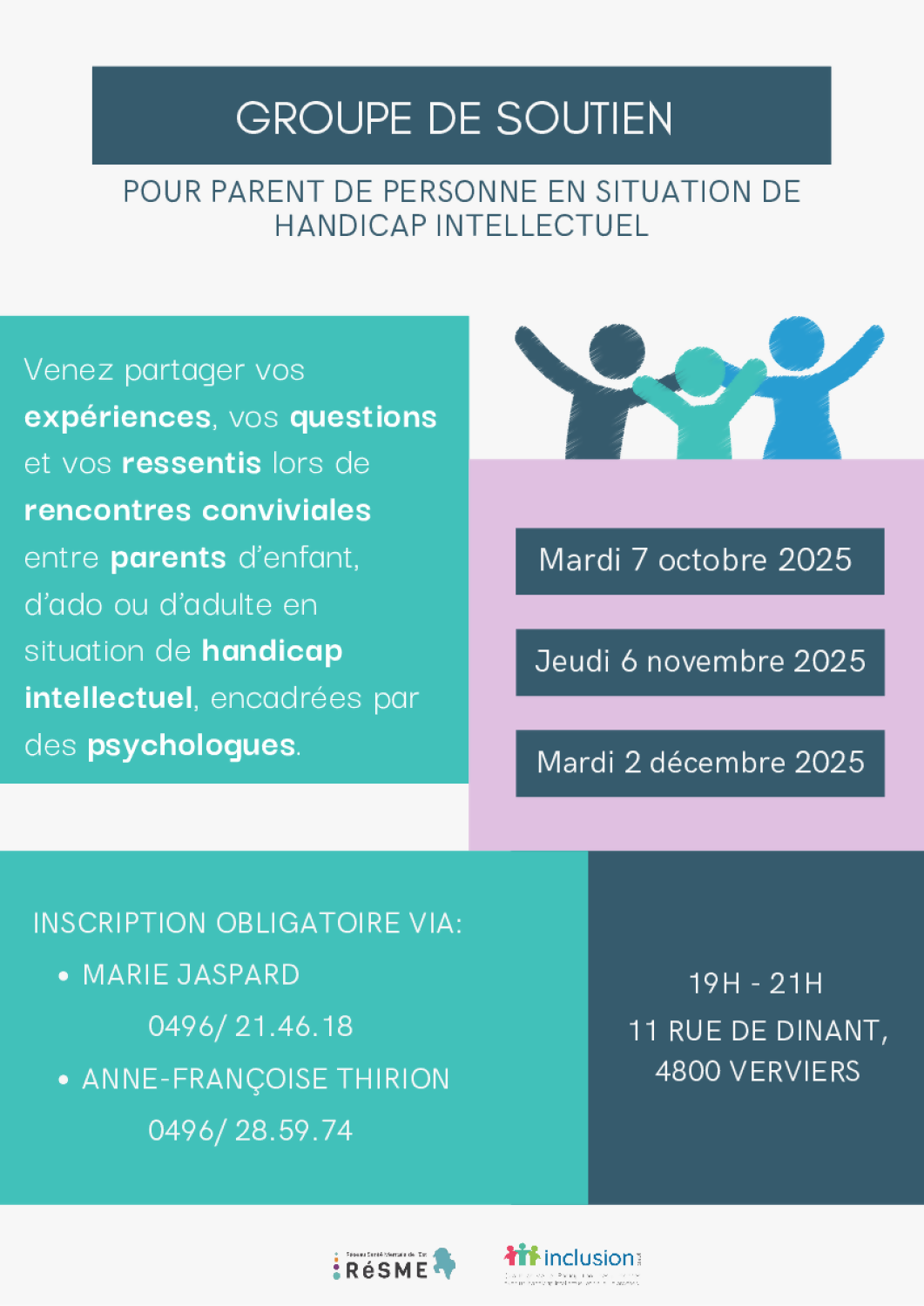 Vous êtes parent d'un enfant/ado/adulte en situation de handicap intellectuel ? Venez partager vos expériences, vos questions, vos ressentis, ... lors de rencontres conviviales encadrées par des psychologues.
