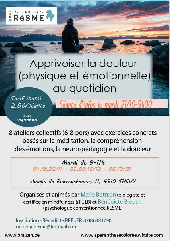 Séances organisées par Caroline Pluymaekers (psychologue/psychothérapeute) et Emilie Brandt...